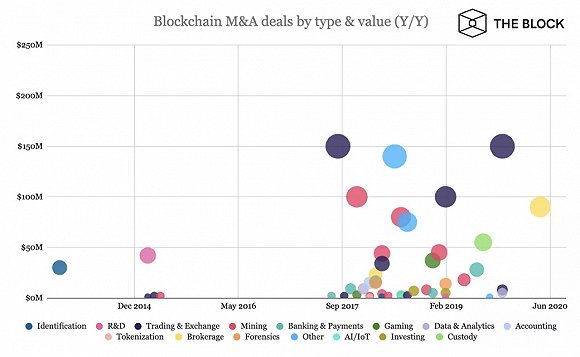 近年来区块链不同领域的并购规模
